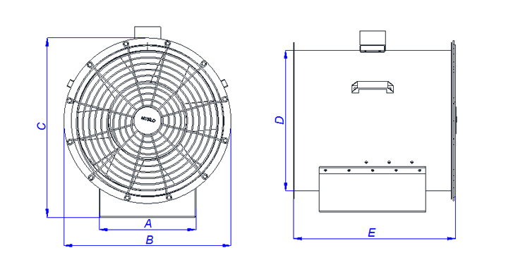 تم تصميم مراوح محواريه مختلفه القوي على حسب الاحتياج وذلك لتطويل مده الانتاج . الماتور القوي يمنع الصوت والذبذابات اثناء العمل ويثبت فى قفص المروحه المحواريه . يوفر التوازن للنظام الالكتروني الخاص . يوفر تدفق هواء كامل وذلك من سكاكين مغلفه بالالمونيوم بتوازن 460Ø . ولتلافى اي خطر يتم تركيب شبكه على المروحه .
